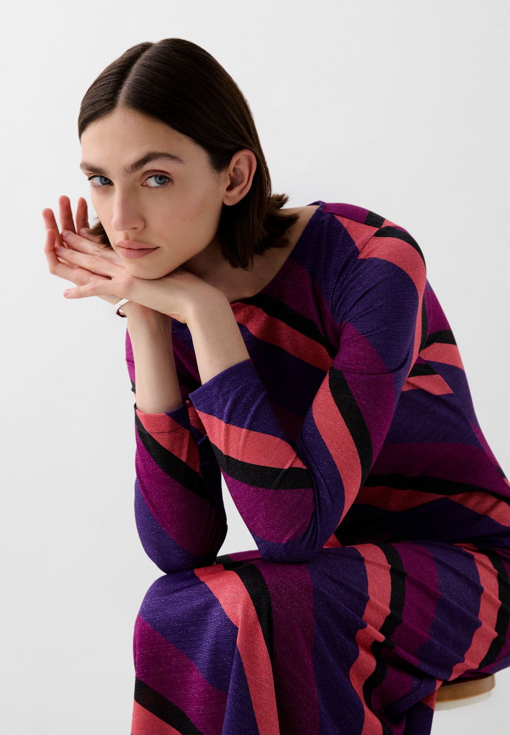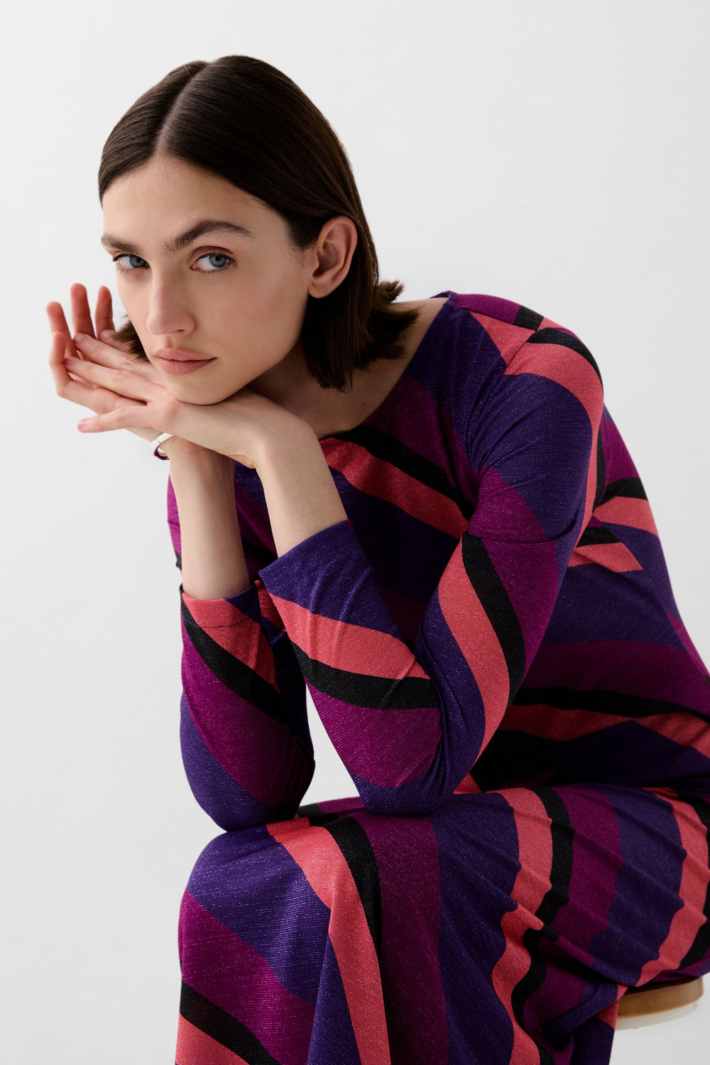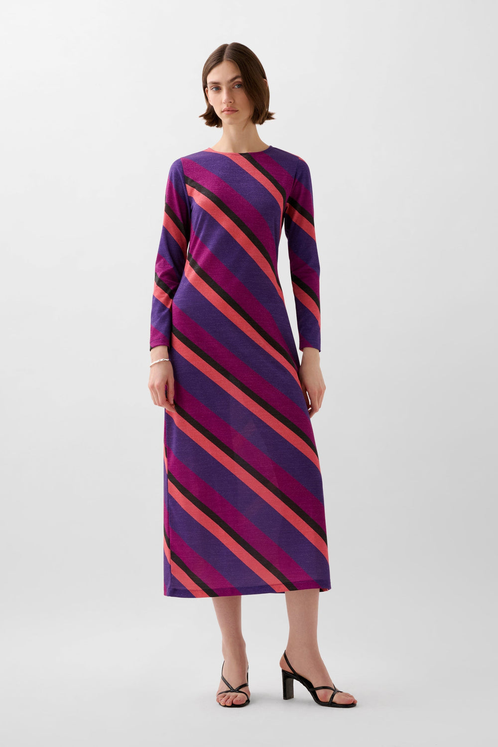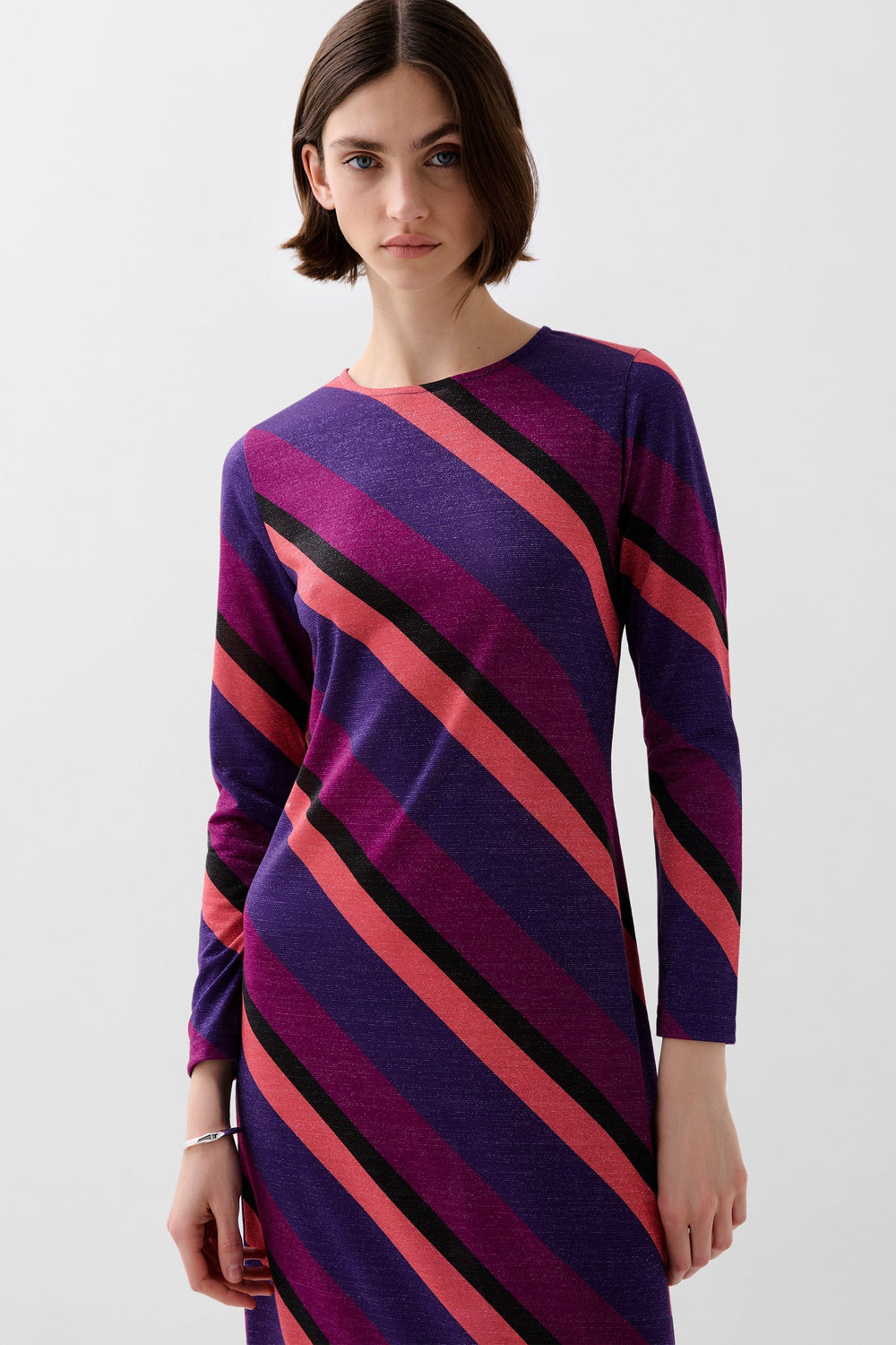 Vestido de rayas con lurex. Slim fit, cuello redondo y manga larga.