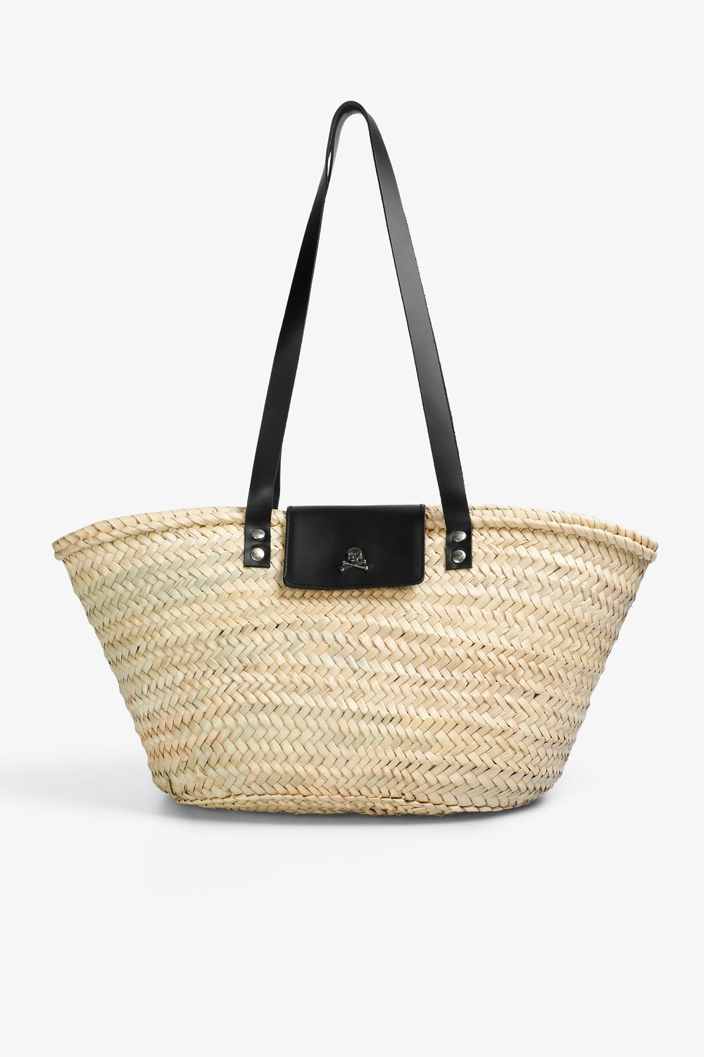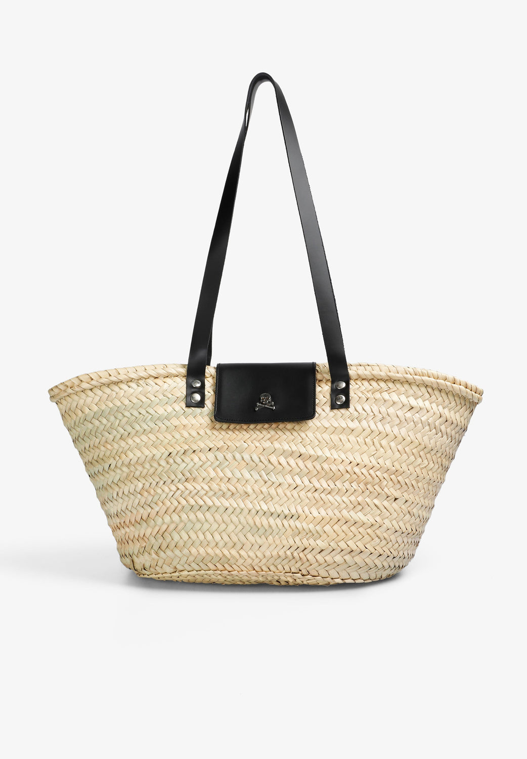 Bolso tipo capazo con logo. Confeccionado en 100% hoja de palma. Asas largas. Cierre con snap. Bolsillo interior de piel.