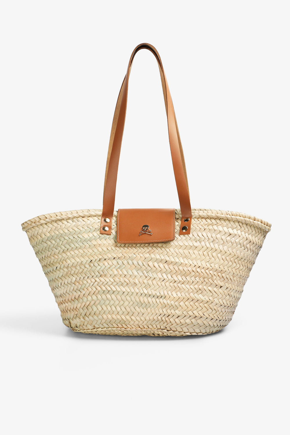 Bolso tipo capazo con logo. Confeccionado en 100% hoja de palma. Asas largas. Cierre con snap. Bolsillo interior de piel.