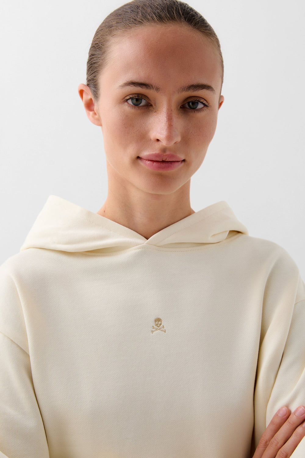 Sudadera confeccionada en 100% algodón. Regular fit, cuello con capucha y manga larga. Calavera bordada frontal.