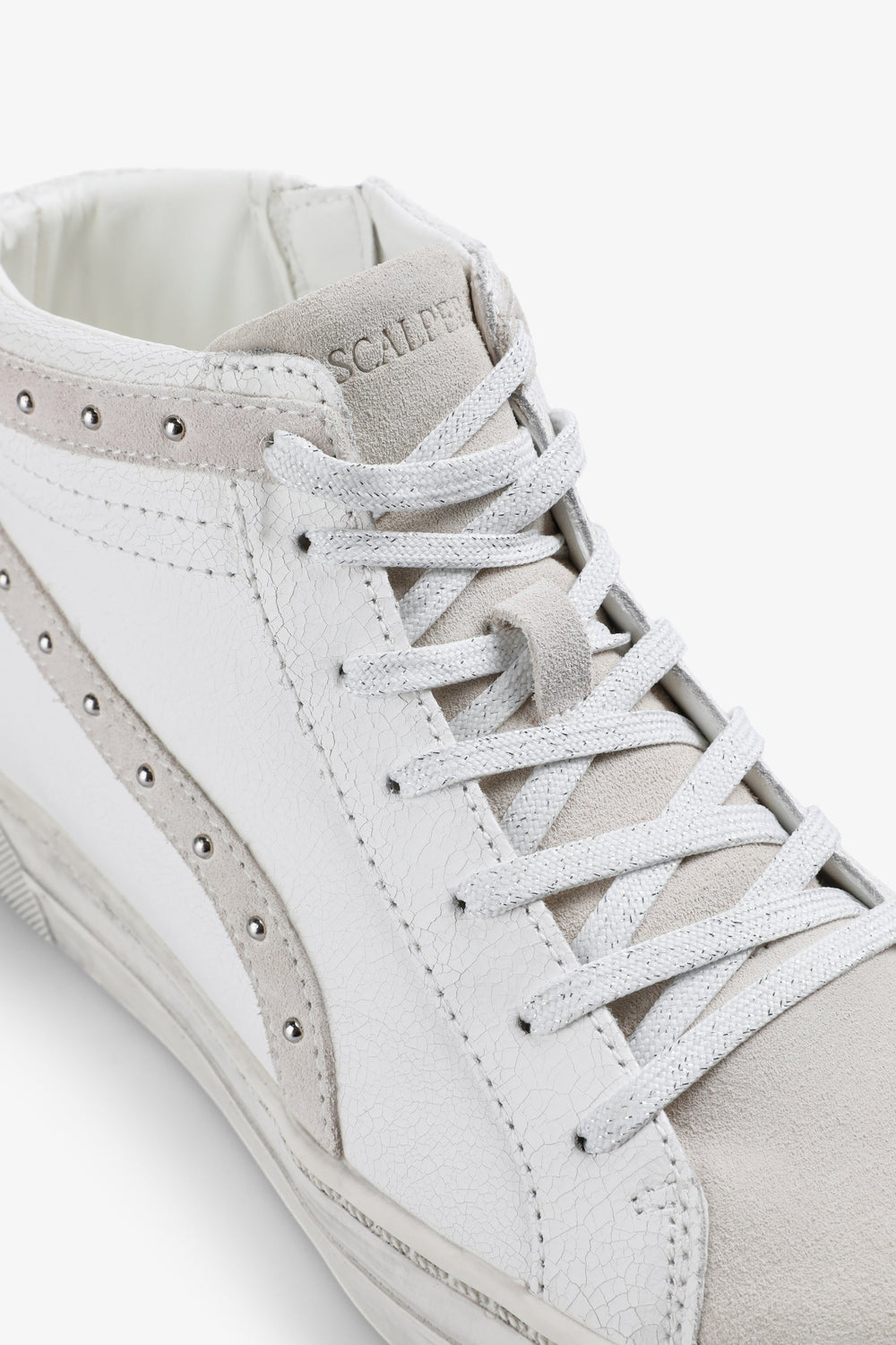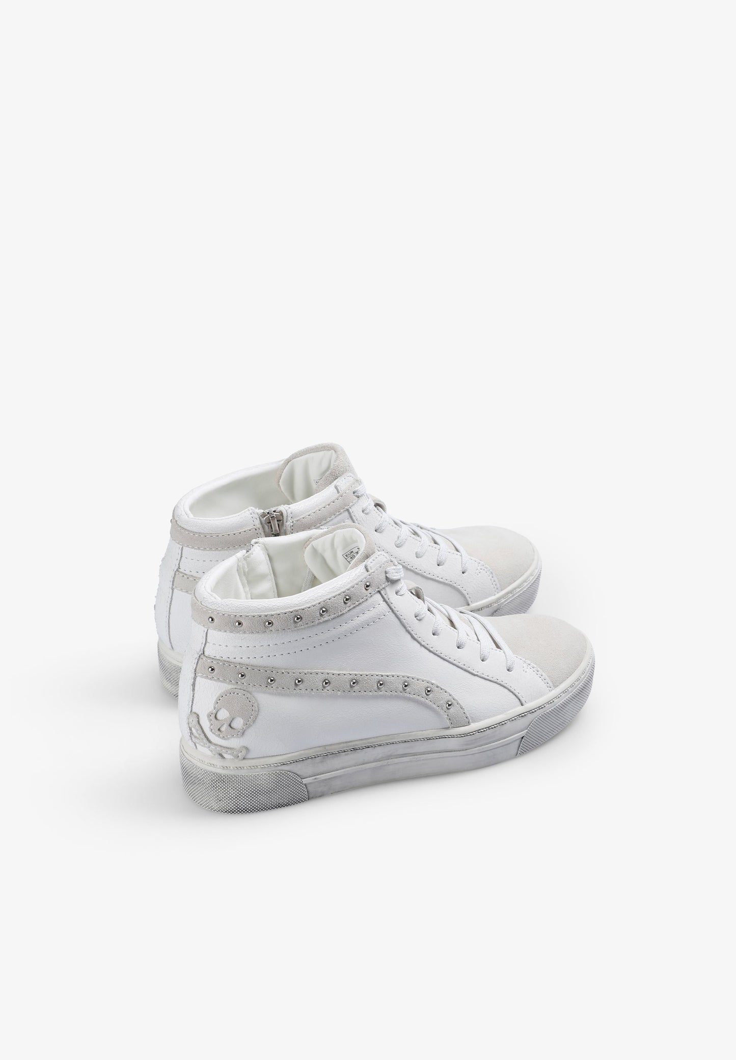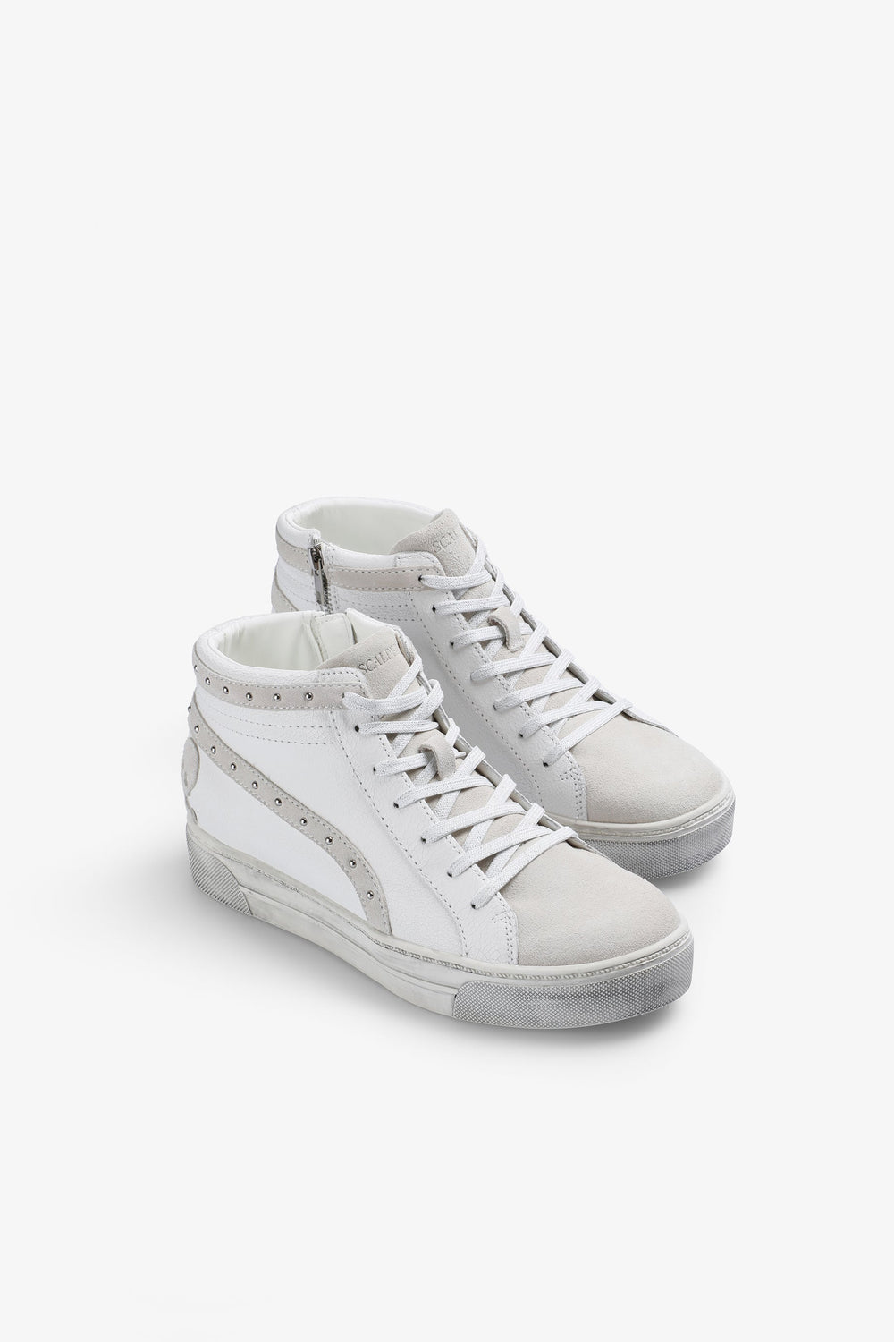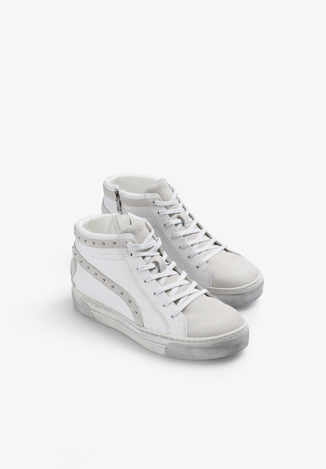 Zapatillas altas confeccionadas en 100% piel de Ante. Logo a contraste bordado. Detalle de tachuelas. Efecto desgastado. Cierre por cordón y cremallera lateral.