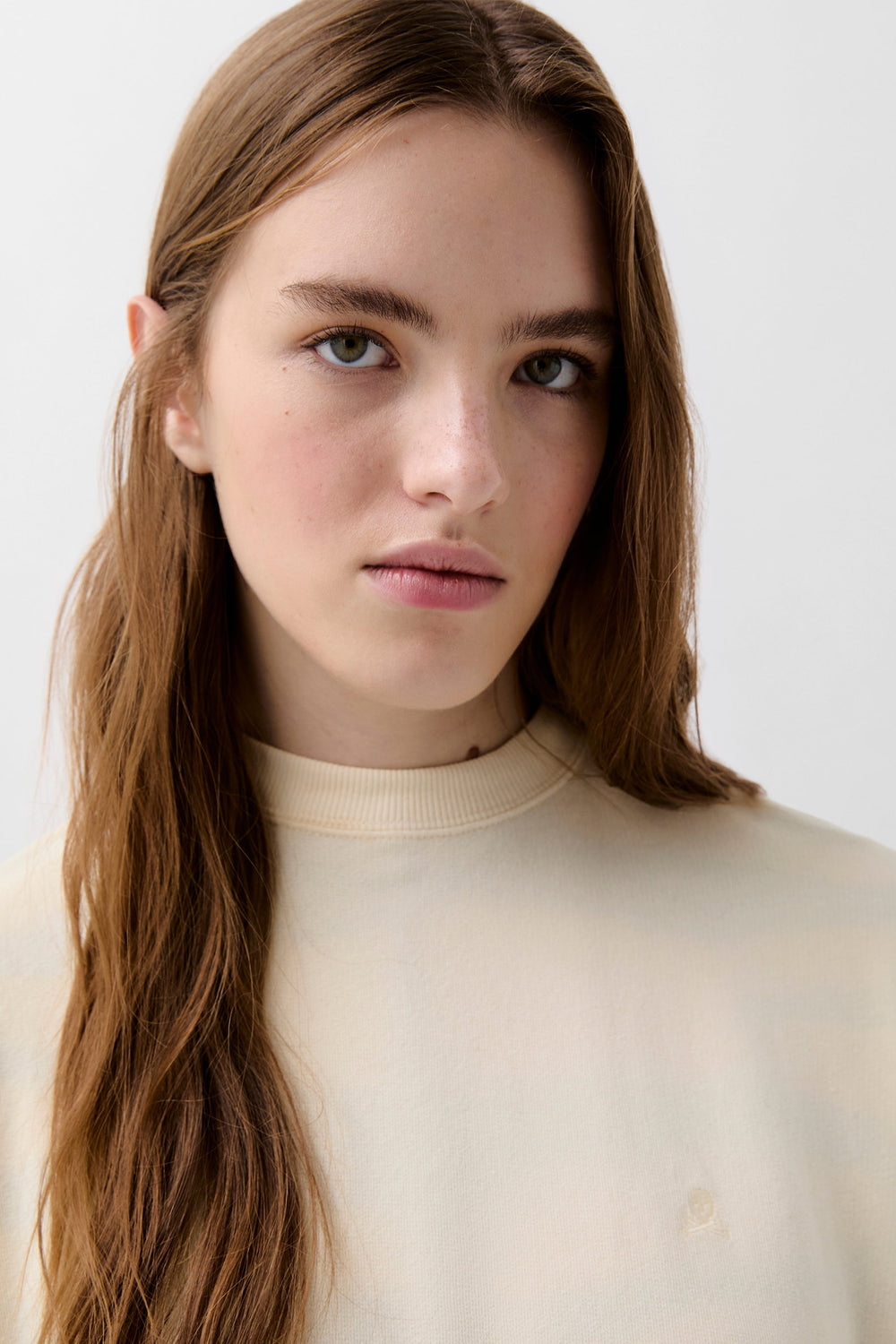 Sudadera confeccionada en algodón. Ligeramente oversize, cuello redondo y manga larga. Calavera bordada a tono.