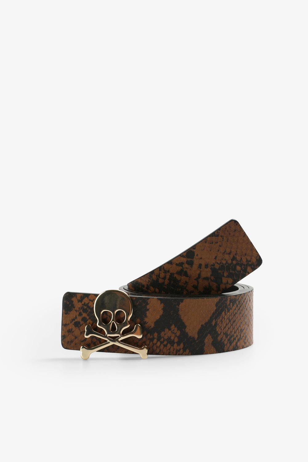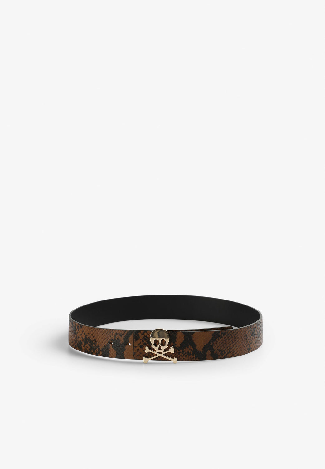 Cinturón reversible confeccionado en 100% piel. Animal print. Detalle frontal de calavera metalizada a contraste.