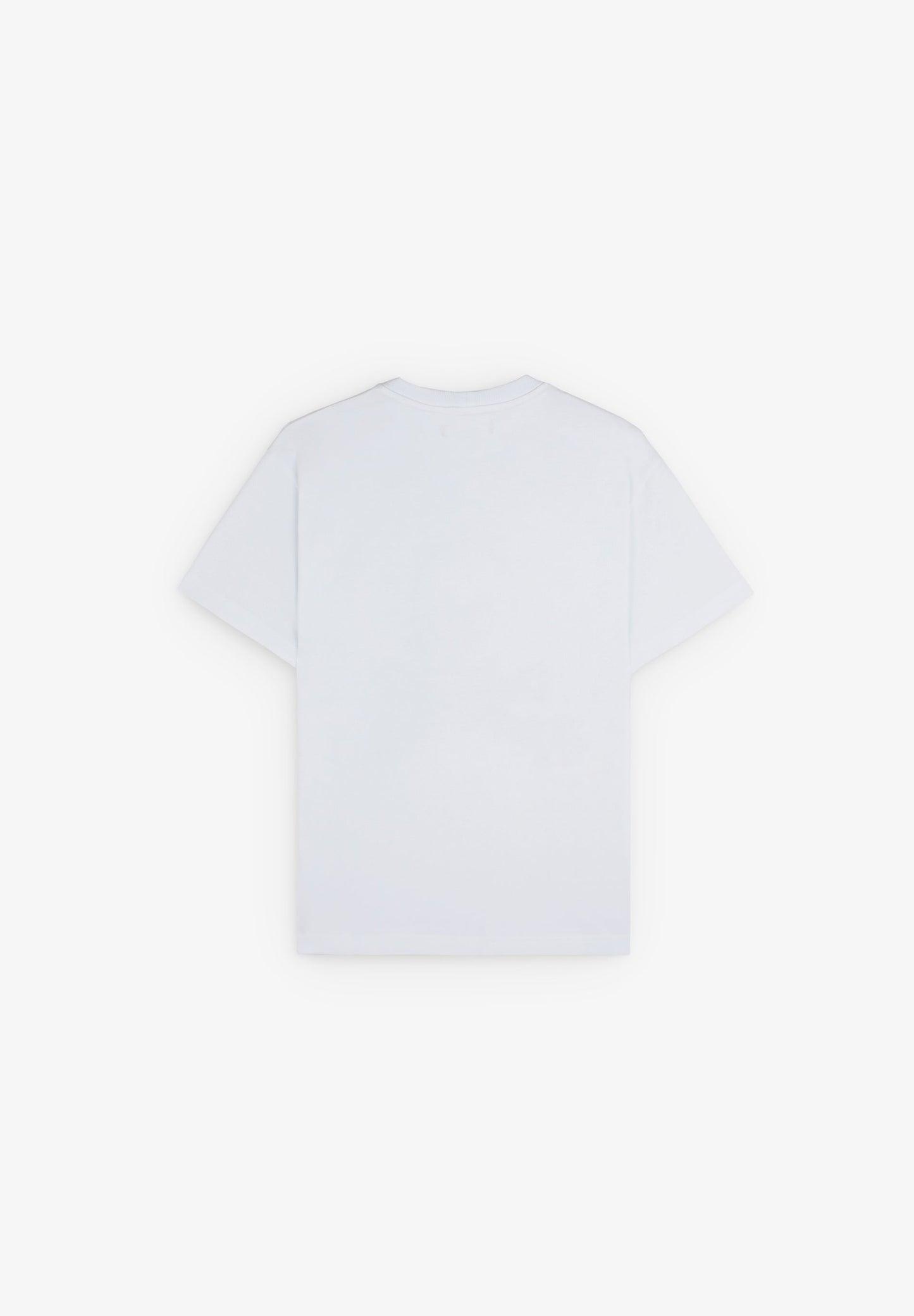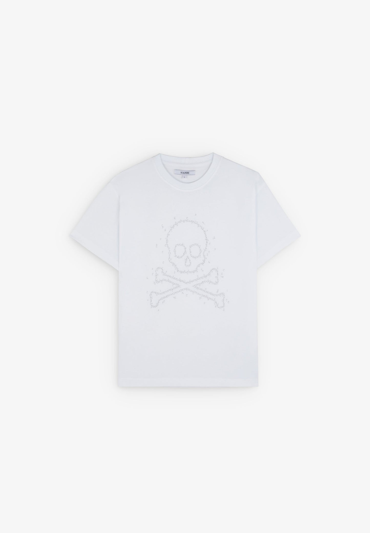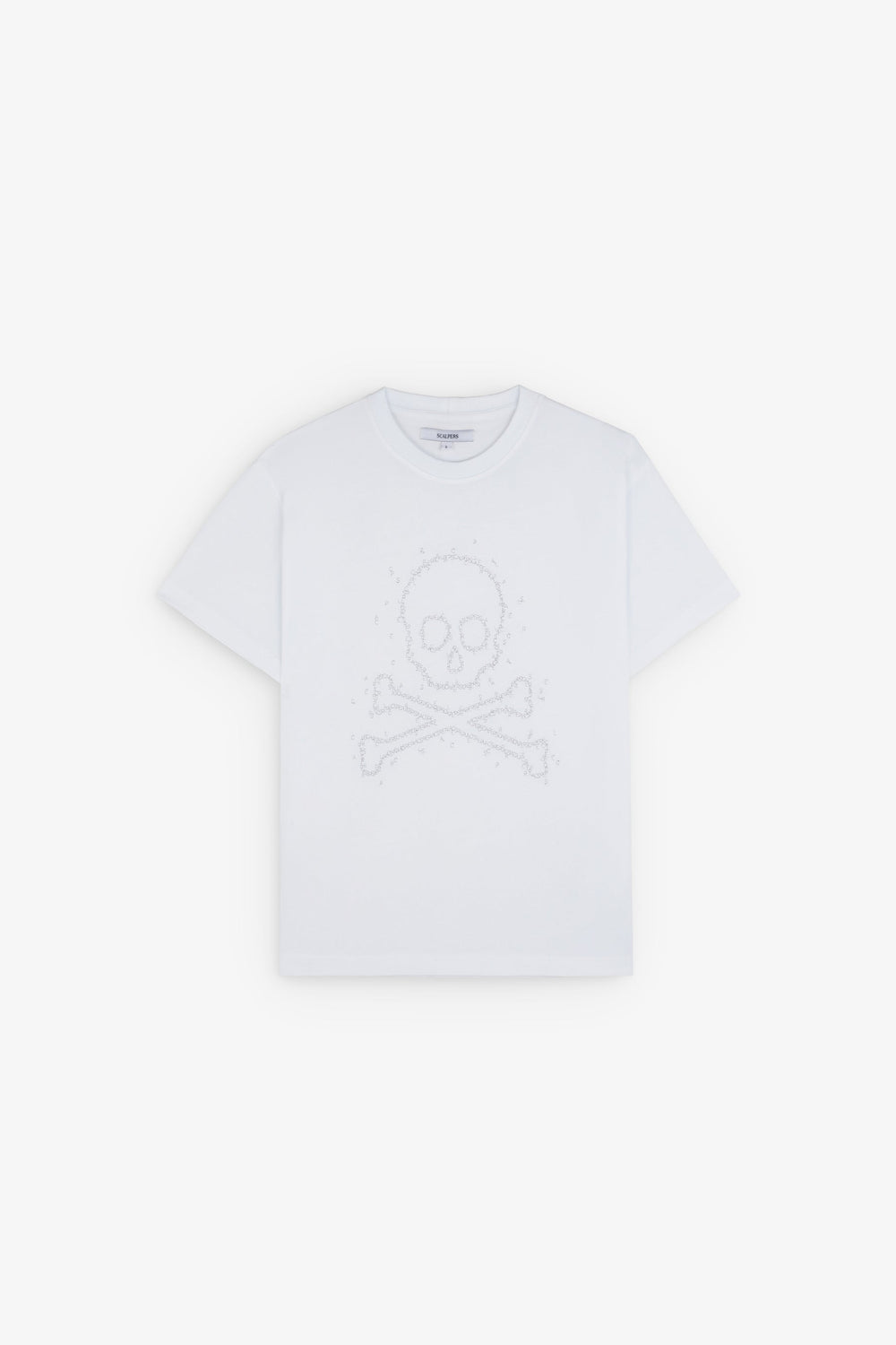 Camiseta confeccionada en 100% algodón con print de letras como contorno de la calavera. Corte regular fit, cuello redondo y manga corta.