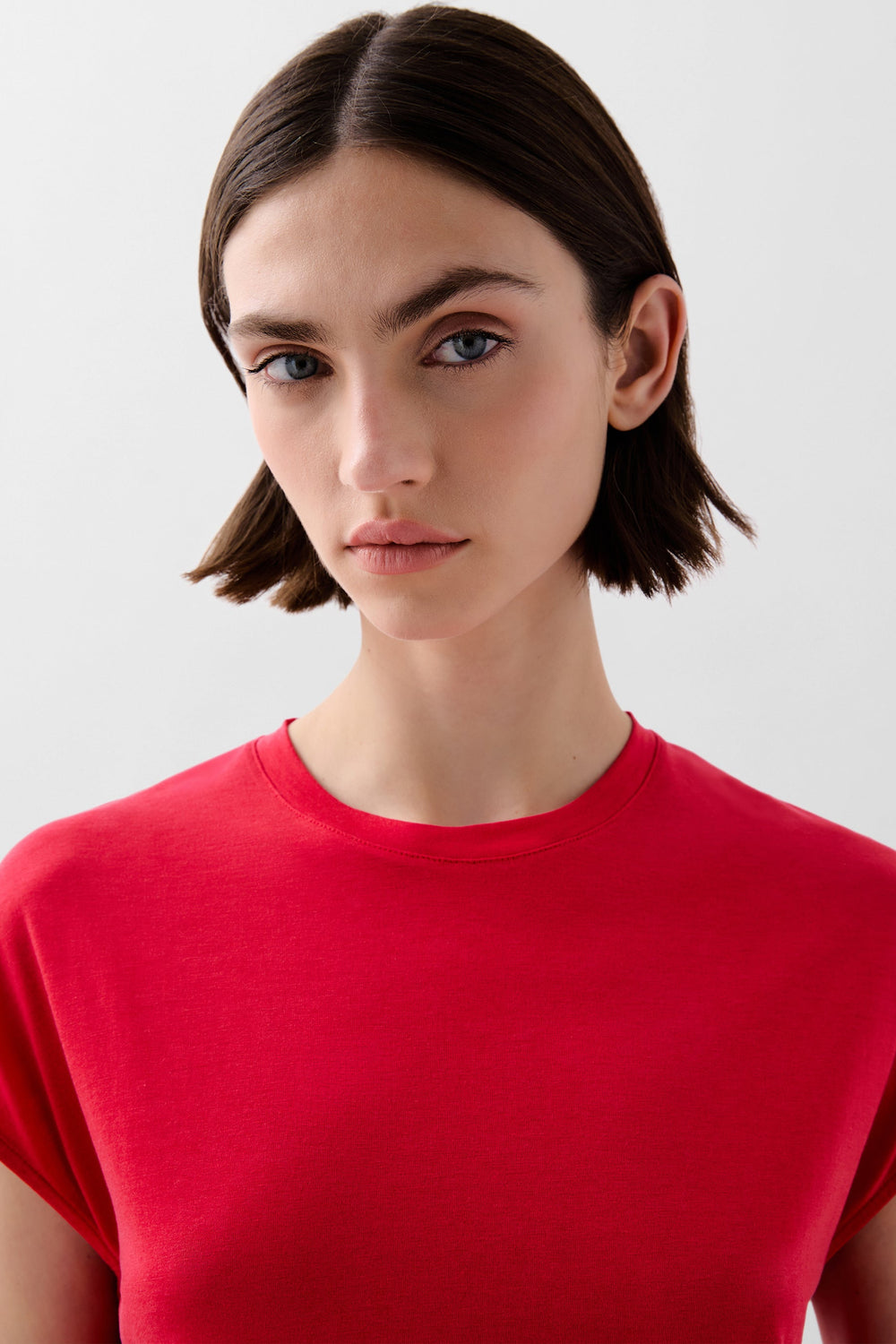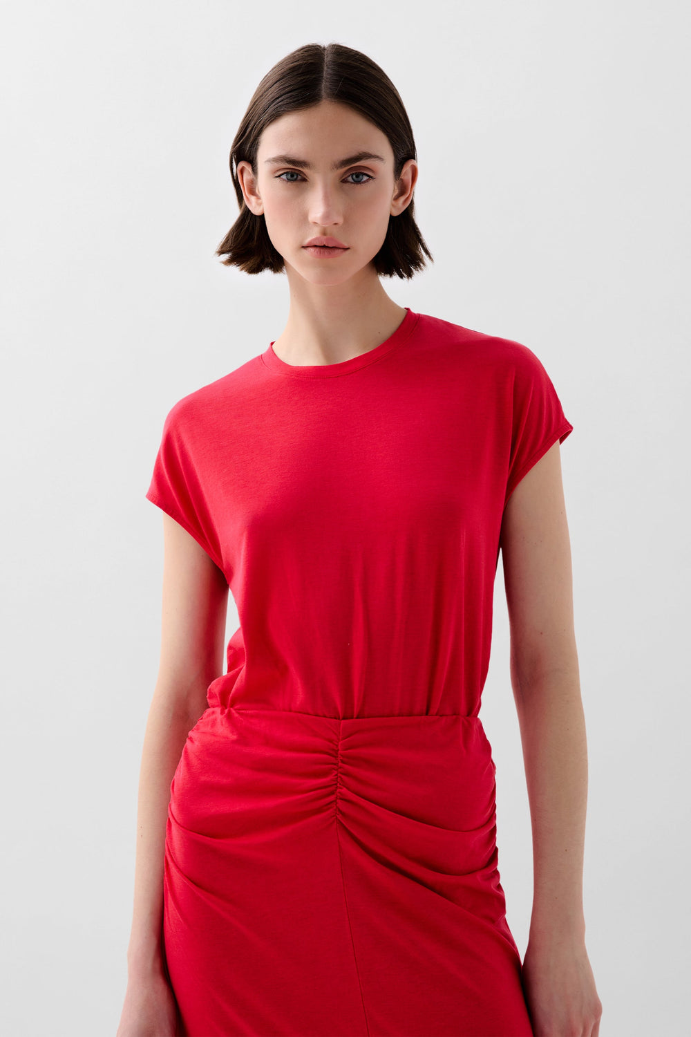 Camiseta con frunces laterales. Confeccionada en mezcla de algodón. Corte Regular fit. Cuello redondo. Manga en corta