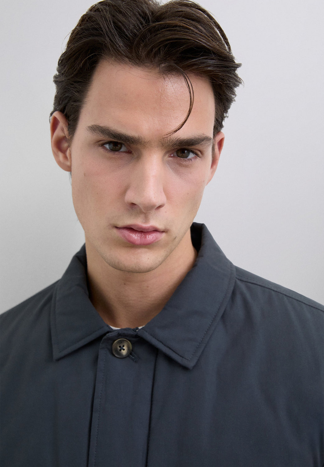 Cazadora bomber confeccionada en mezcla de algodón. Cierre mediante botón y cremallera oculta. Bolsillos frontales con solapa. Bolsillos laterales. Forro interior acolchado. Bolsillo insertando interior con cremallera. Bajo y puños acanalados. Detalle de logo a tono en manga.