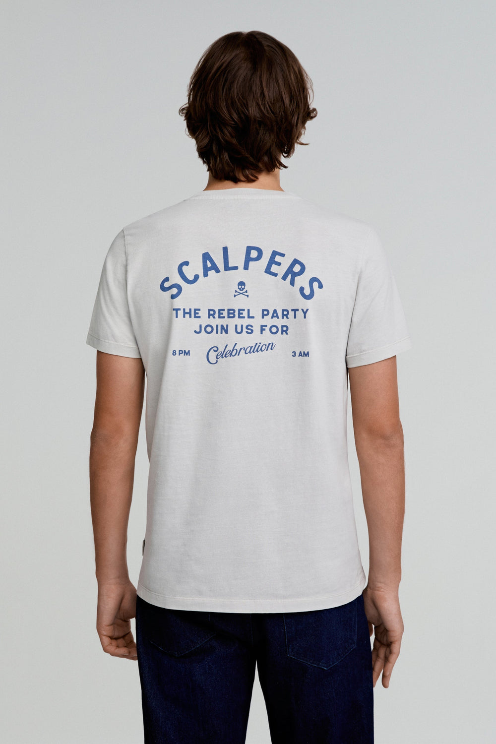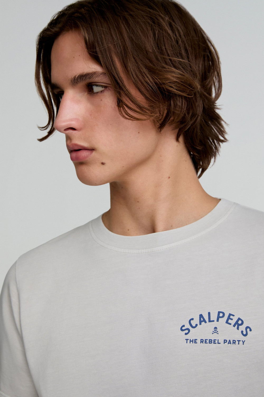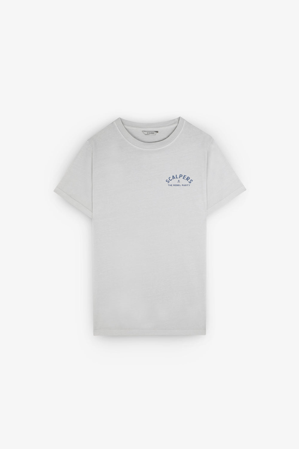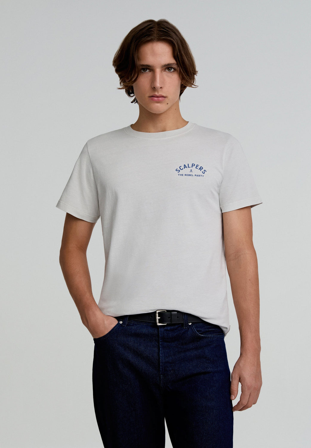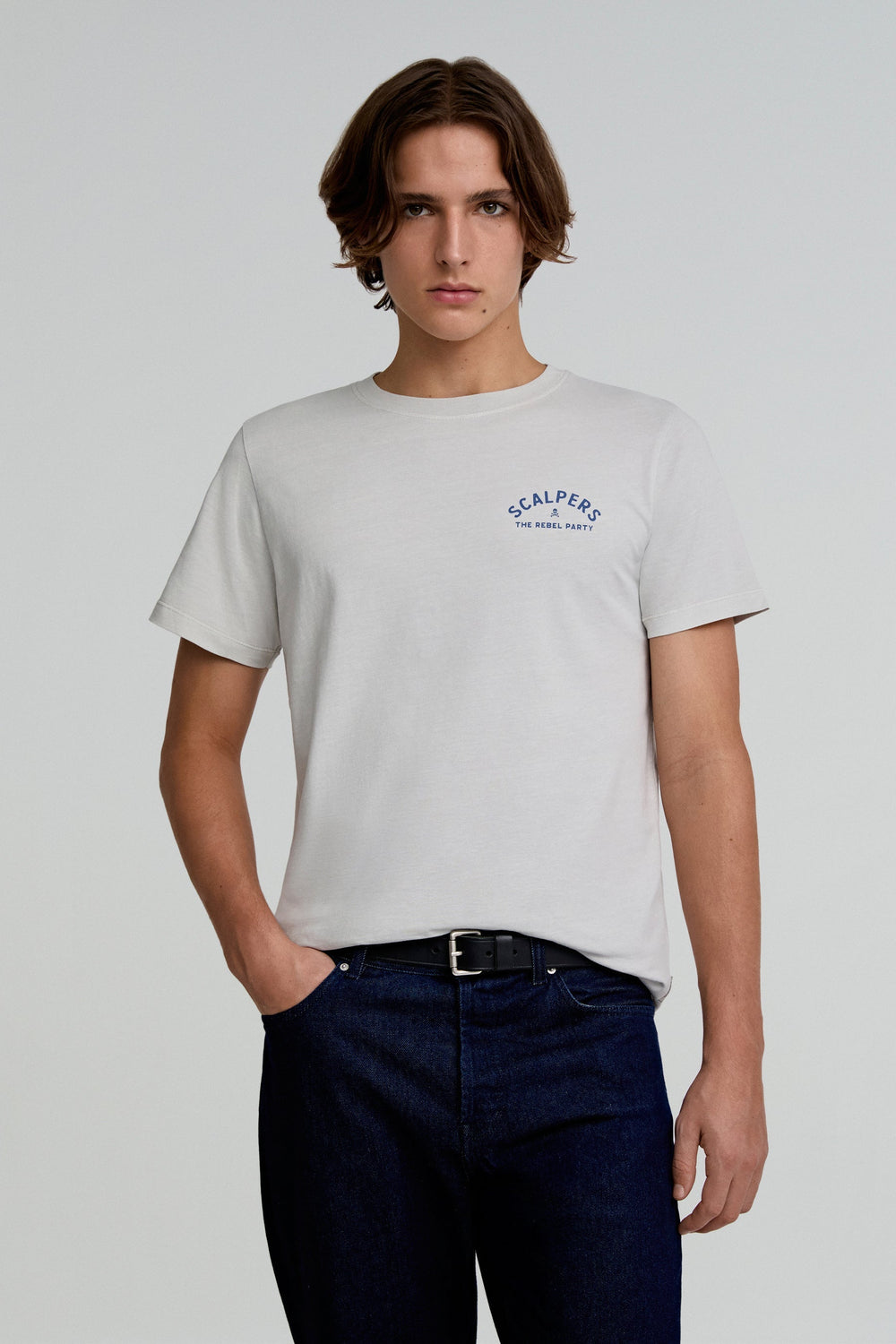Camiseta lavada confeccionada en 100% algodón BCI. Regular fit, cuello redondo y manga corta. Detalle de print trasero y en pecho.