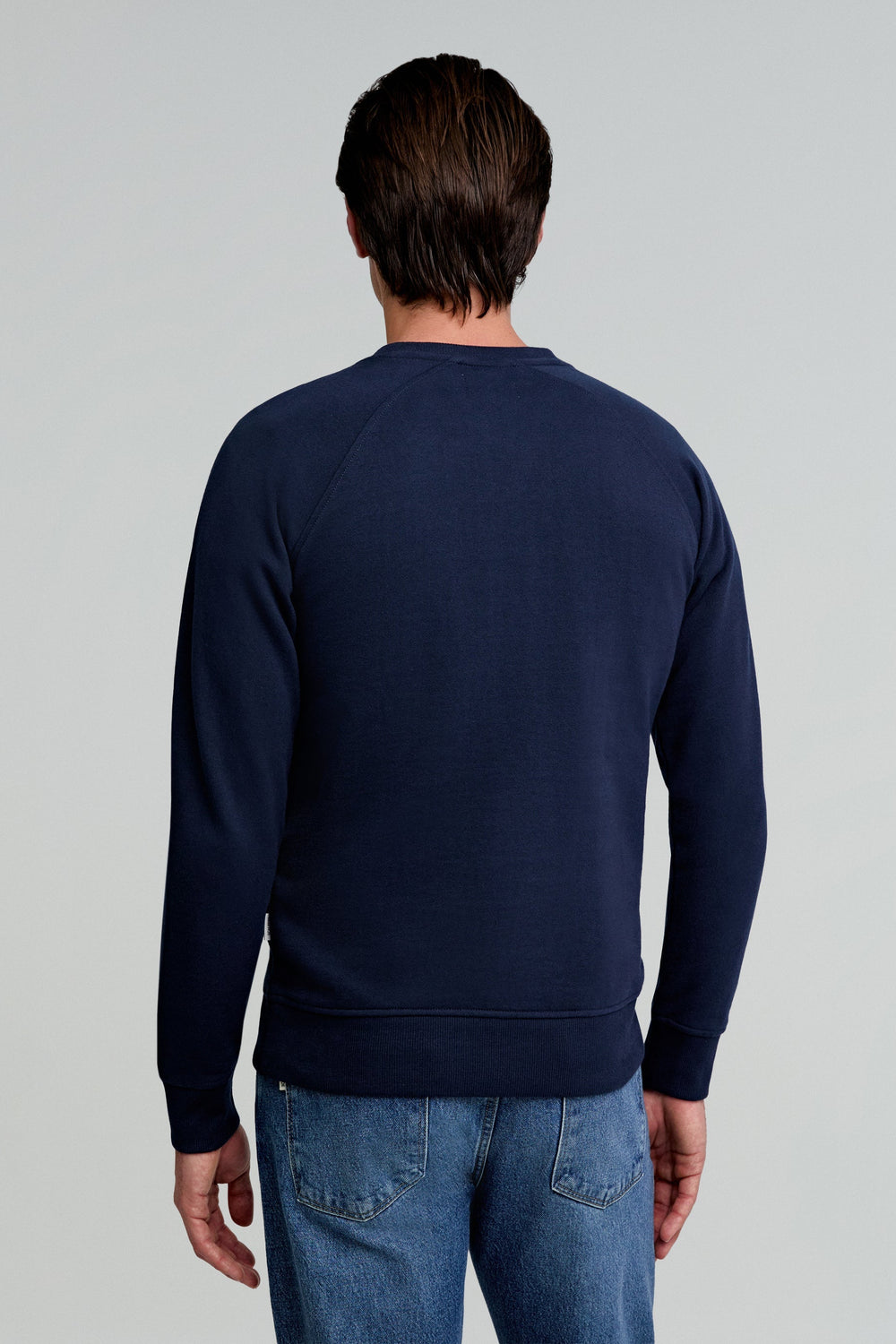 Sudadera confeccionada en algodón 100% BCI. Corte Regular Fit, cuello redondo y manga larga ranglan con puños acabados en rib. Print logo frontal en pecho.