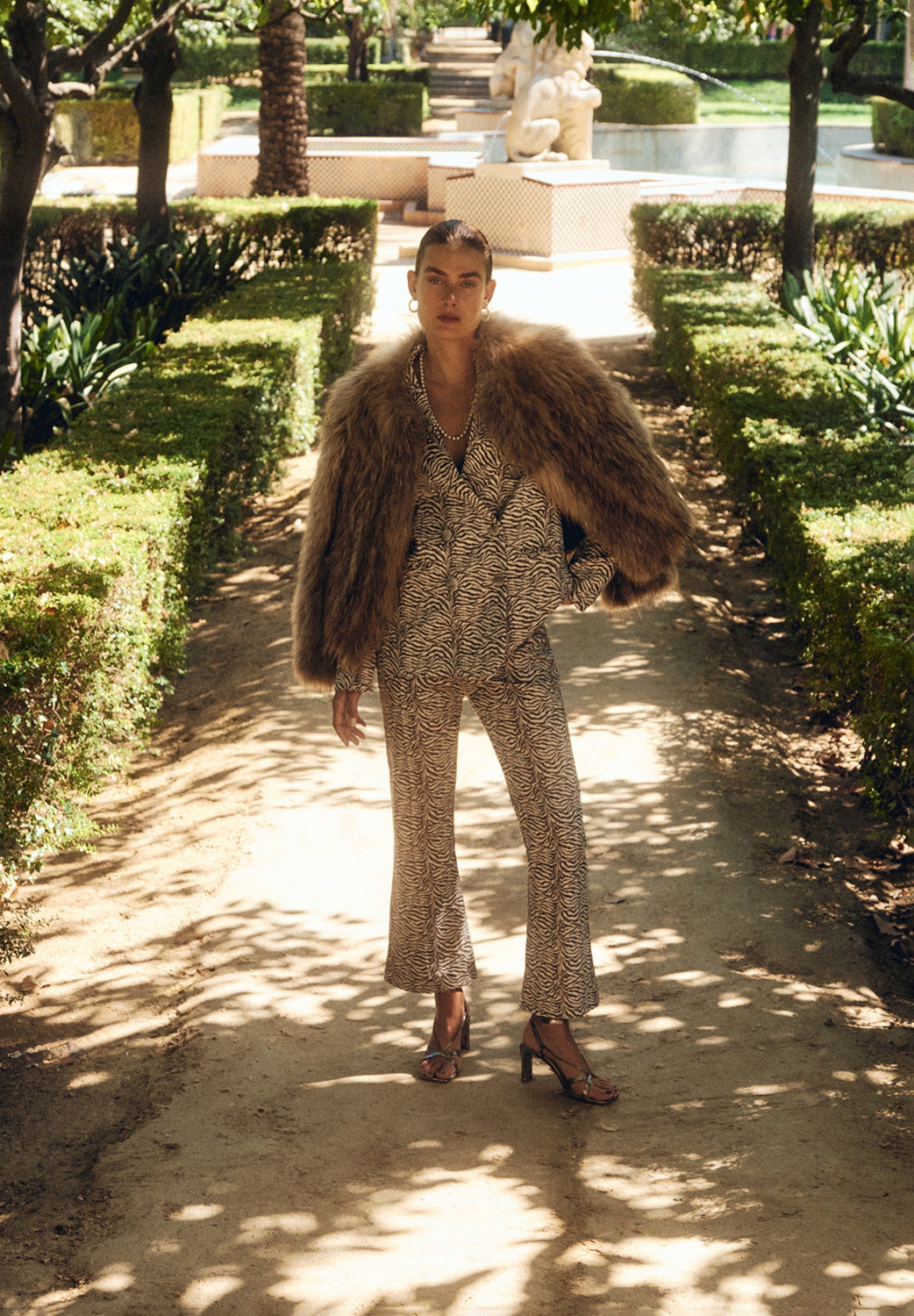 ABRIGO PREMIUM premium confeccionada en 100% pelo. Regular fit, escote cerrado y cierre con corchetes. Manga larga.