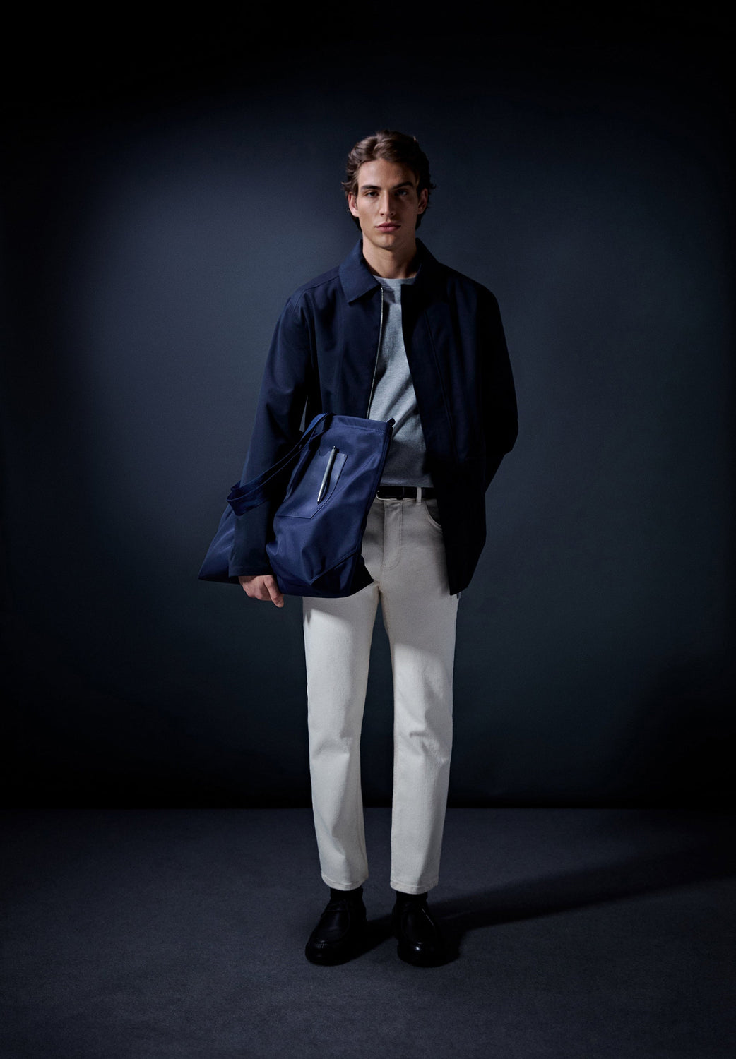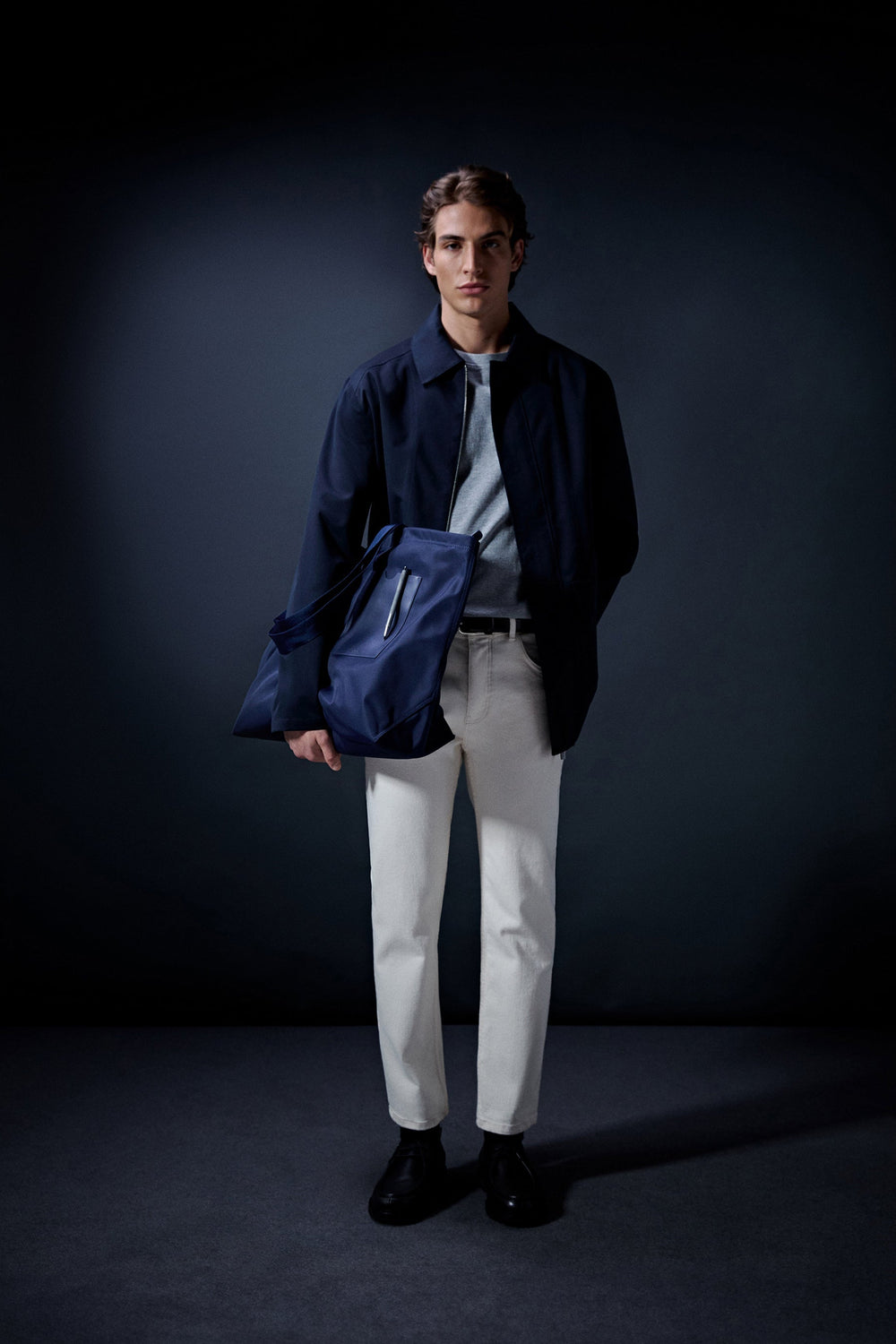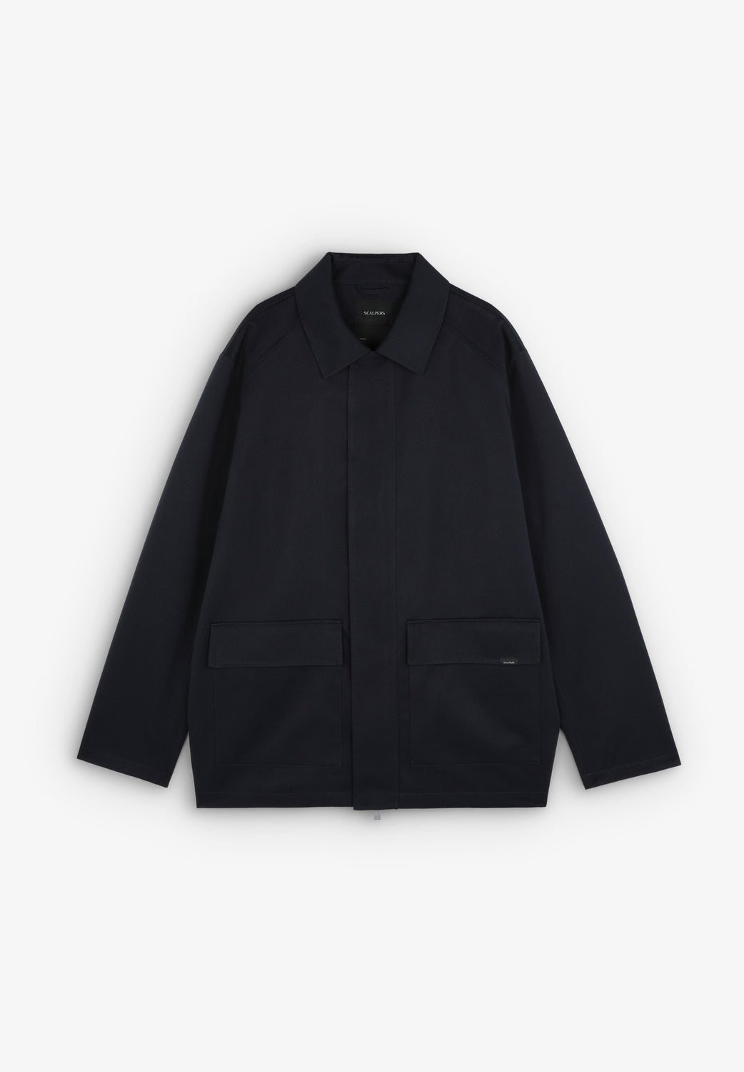 Chaqueta confeccionada en tejido técnico. Regular fit, cuello clásico y cierre con cremallera y tapeta. Manga larga y bolsillos frontales con tapeta. Ajustadores traseros.
