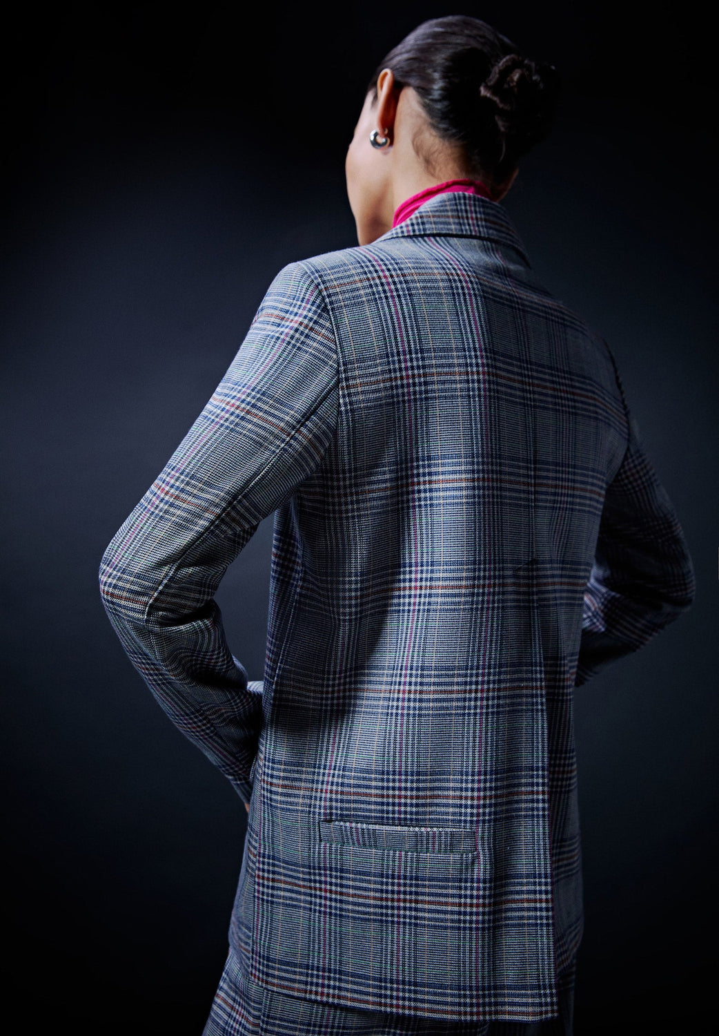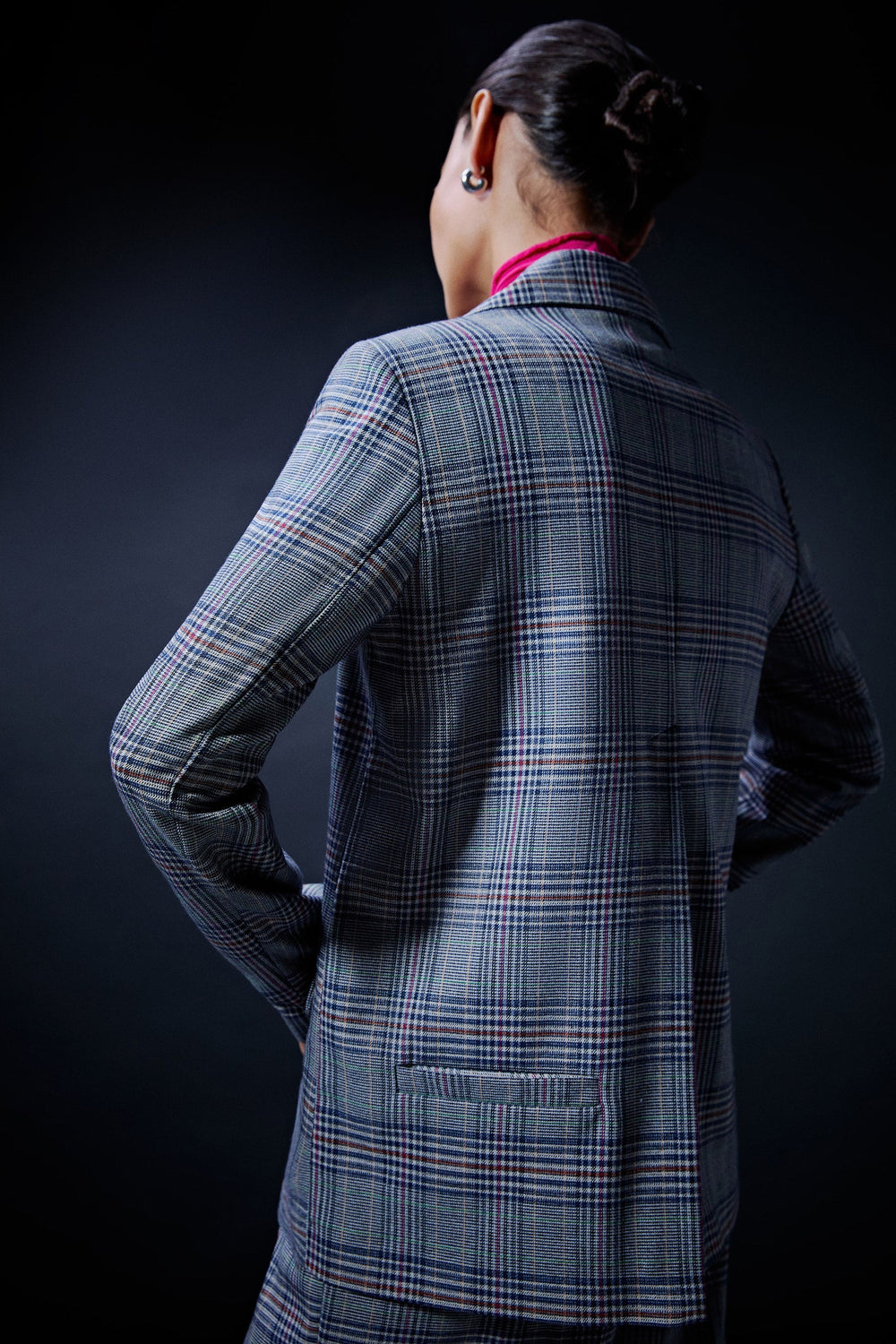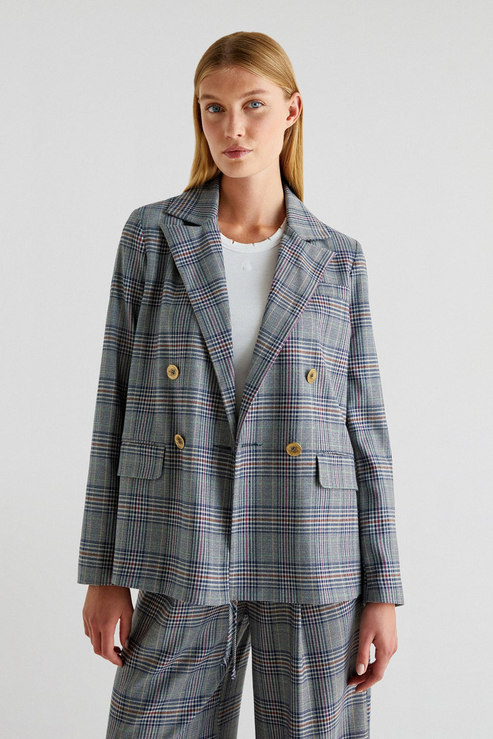 Blazer de cuadros confeccionada en algodón. Corte oversize, cierre cruzado con botones y cuello con solapas. Manga larga y bolsillos con solapa.