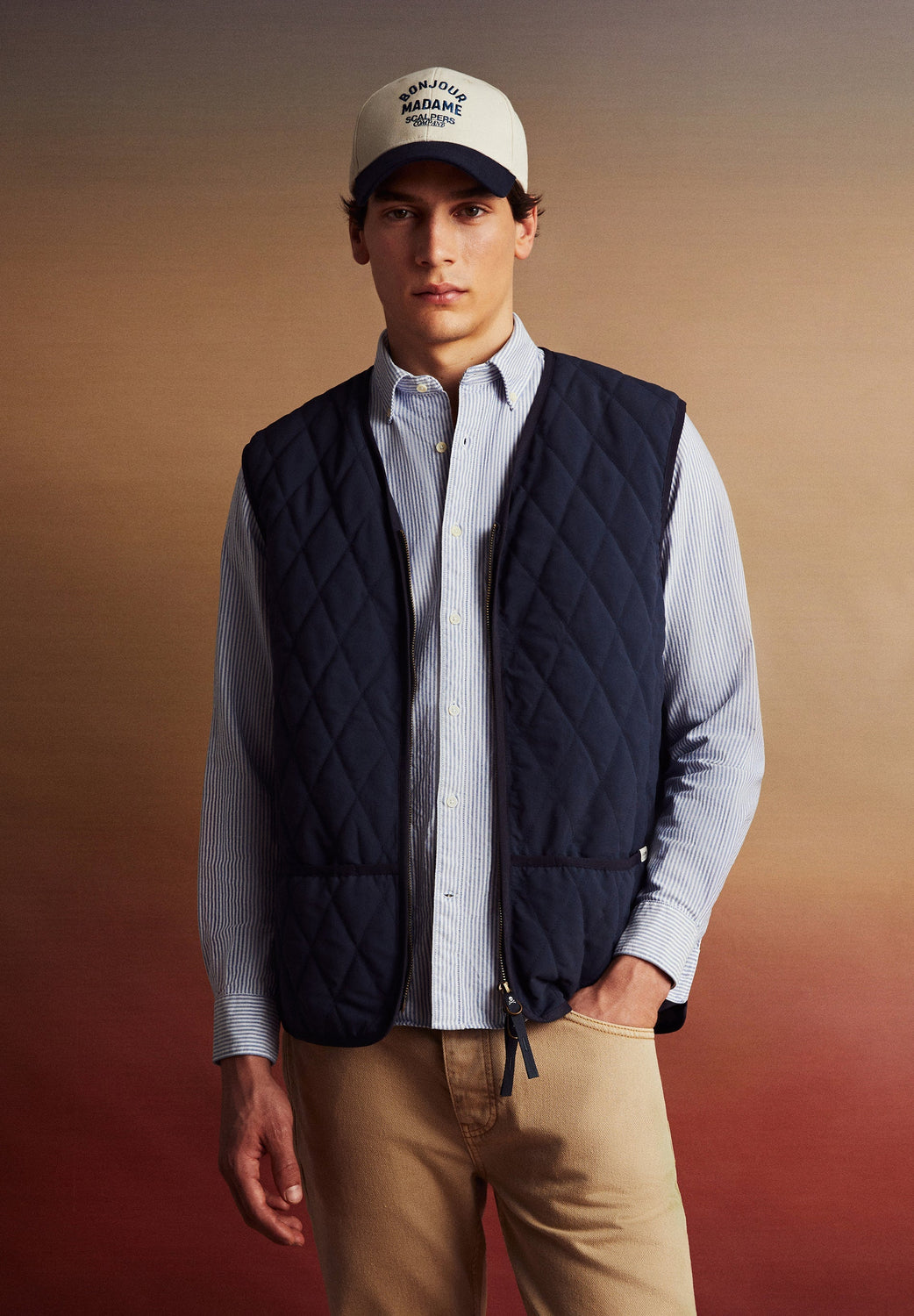 Chaleco acolchado. Confeccionado en nylon reciclado, Regular Fit y cuello de pico con cierre de cremallera de doble carro. Bolsillos frontales con detalle de logo en etiqueta.