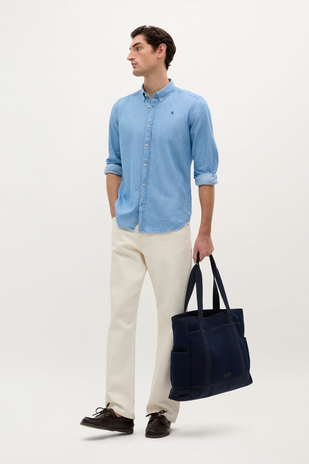 Camisa confeccionada en 100% Algodón Orgánico. Manga larga. Cierre mediante abotonadura frontal. Cierre en puños ajustable mediante botón. Monograma bordado en parte frontal. Detalle de etiqueta con logo en lateral.