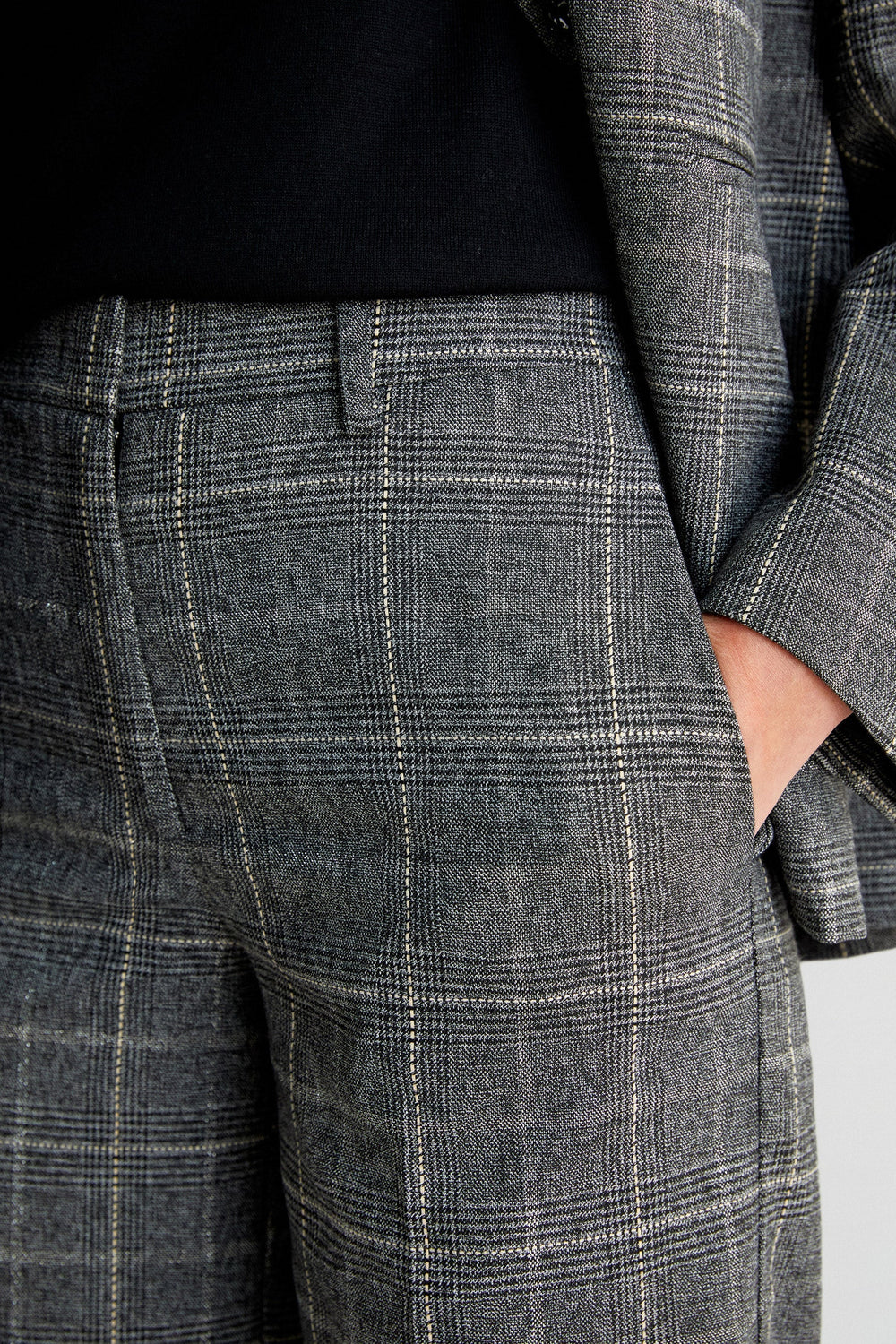 Pantalón de cuadros. Corte recto full length, cierre con corchete y cremallera. Bolsillos laterales y trabillas en cintura.