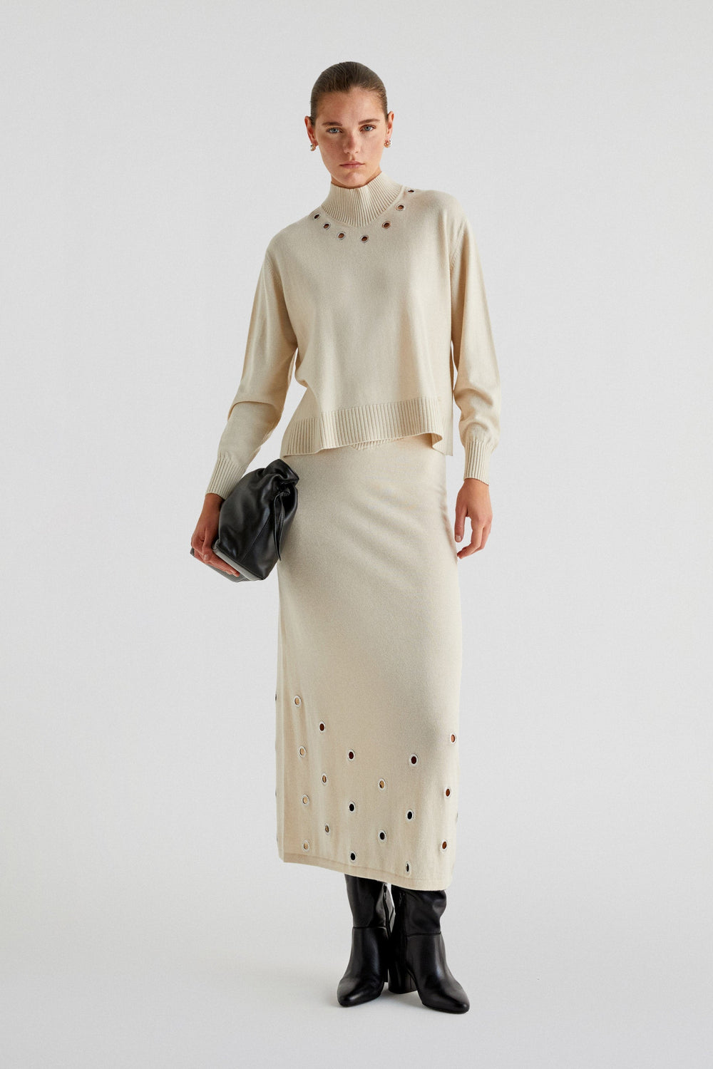 Falda midi de punto confeccionada en mezcla de algodón. Slim fit y detalle de ojales en el bajo.