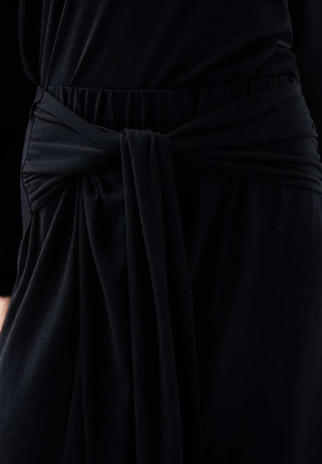Falda midi con detalle de nudo con lazadas en delantero y bajo acabado en línea evasé