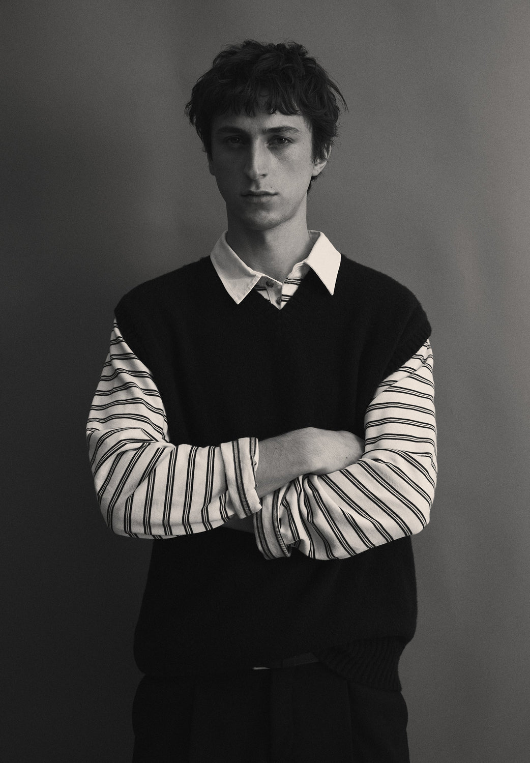 Chaleco confeccionado en mezcla de lana. Cuello pico. Corte regular.