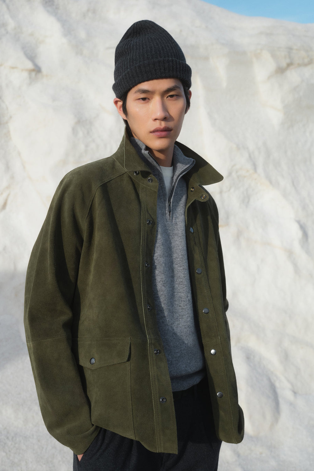 Chaqueta confeccionada en 100% piel. Regular fit, cuello ligeramente redondeado y cierre con snaps. Manga larga y bolsillos con tapeta y snaps.